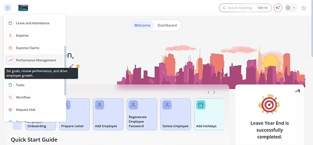 To add a new task,from the greytHR Admin portal hover over the 9 dots and go to Tasks.